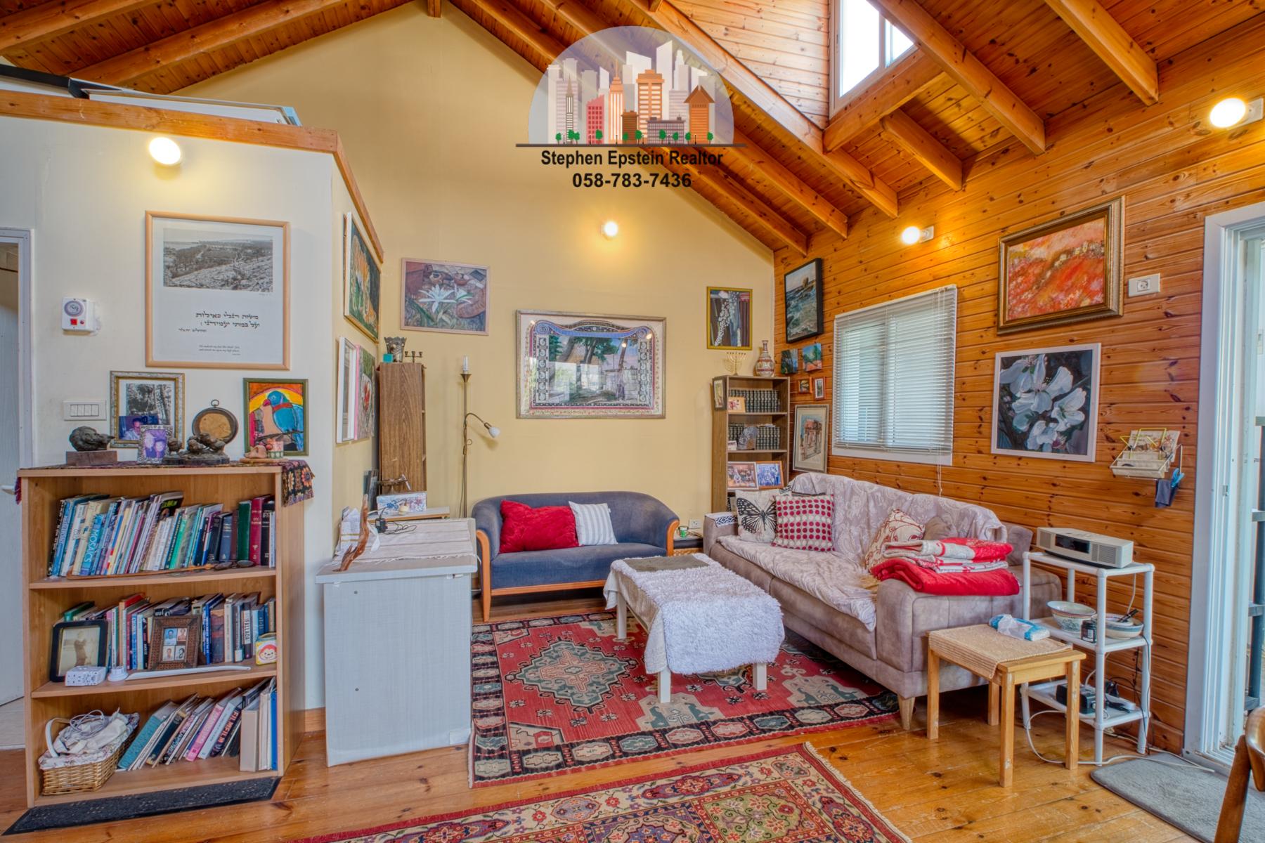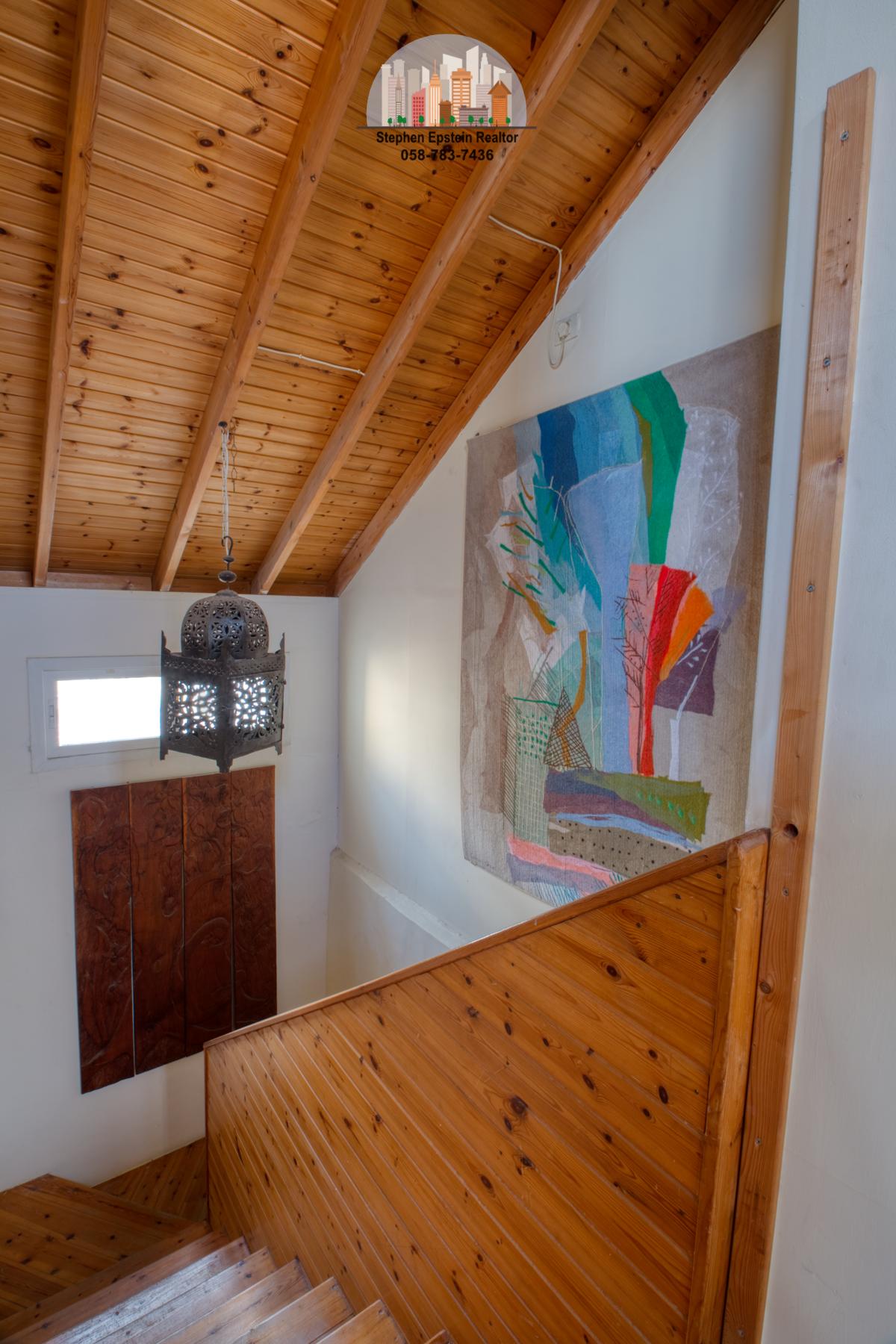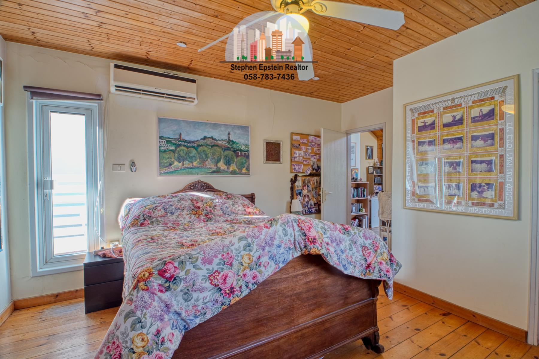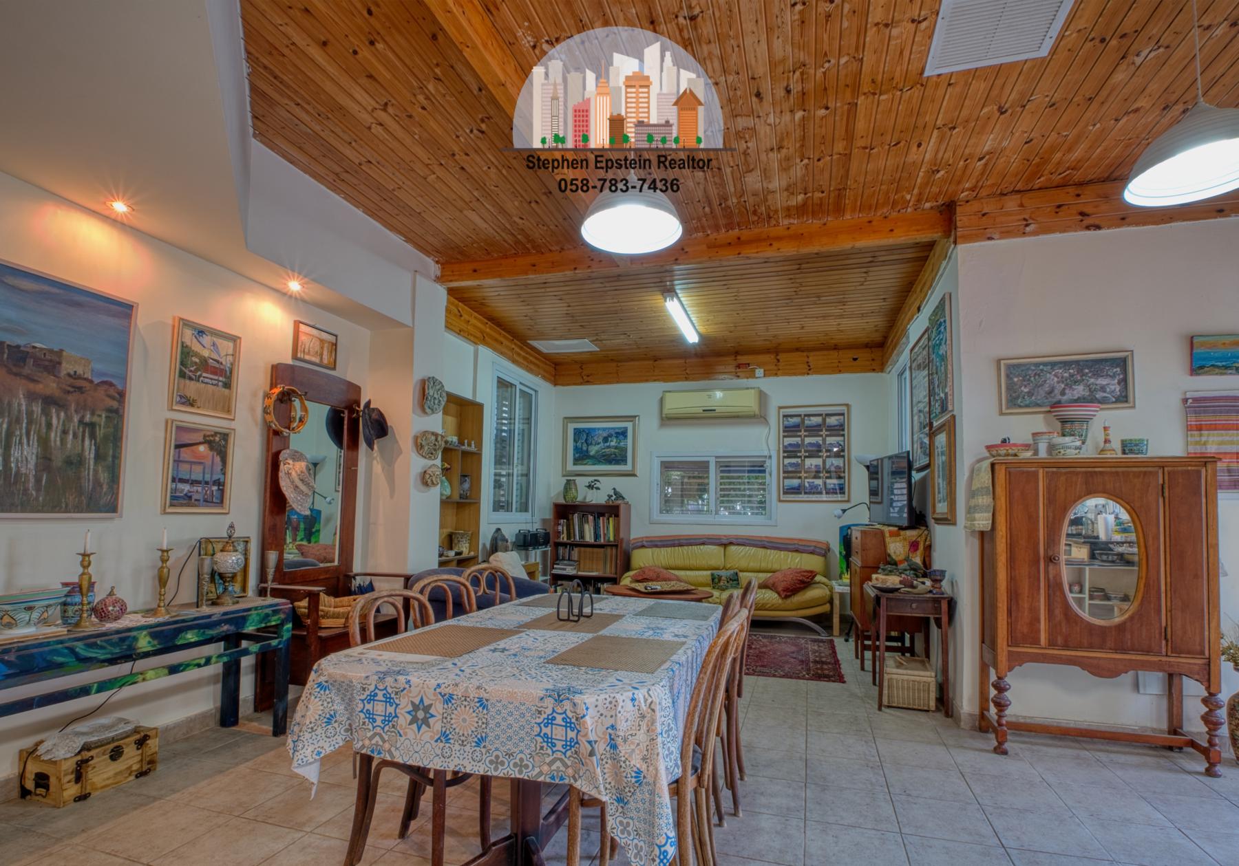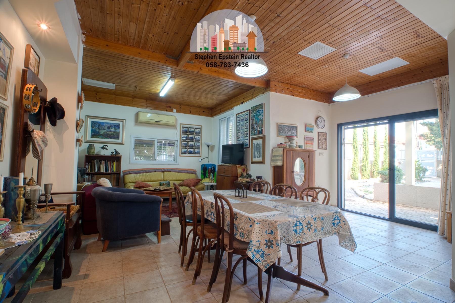 Built on a large (~425 square meter) lot, this 187 square meter home (plus mirpeset)  features wide plank pine floors, pine ceilings, stairs. It is on a large fenced in courtyard with mature trees on the lot, including fruit trees. The home is cooled and heated with AC/heating units as well as ceiling fans. The upper floor has skylights filling the room with a beautiful light. Situated on a quiet street in Afridar, close to a large Ashkenazi shul, parks, schools and public transportation and a commercial center