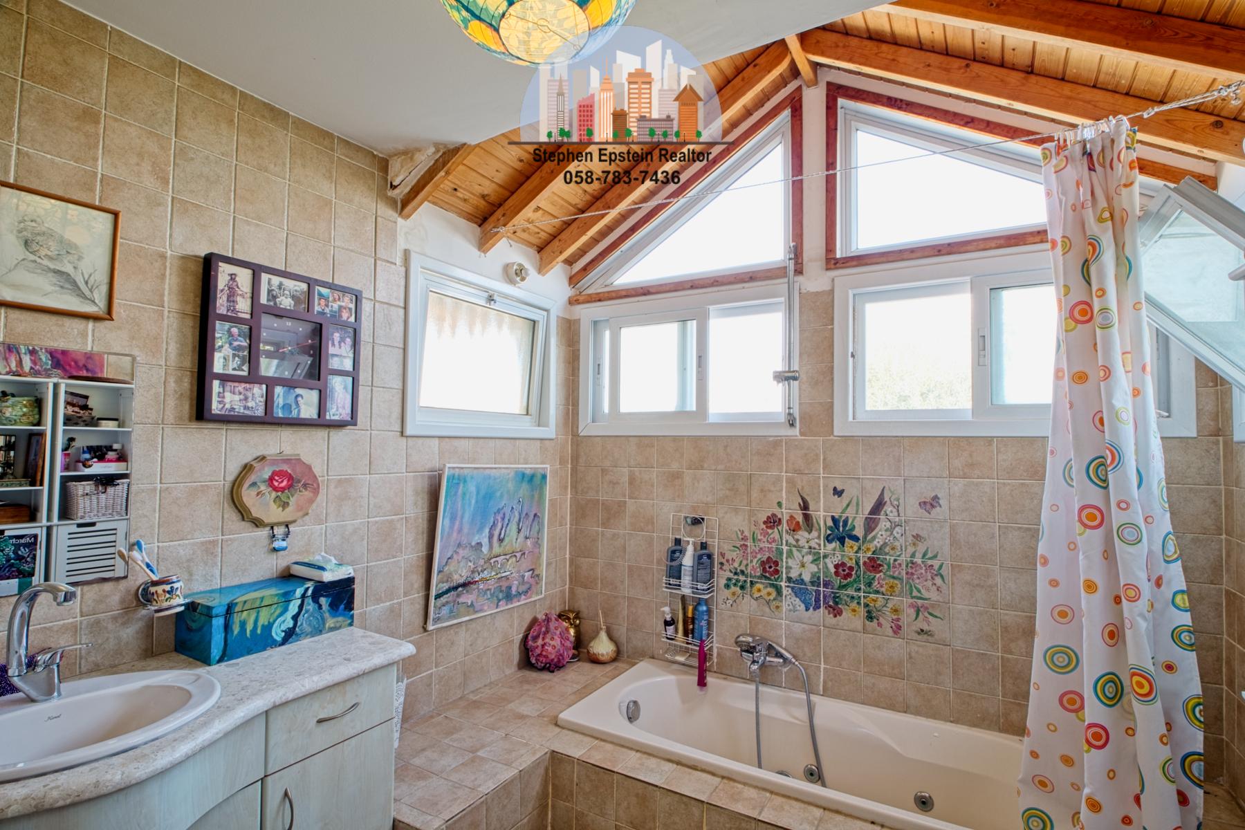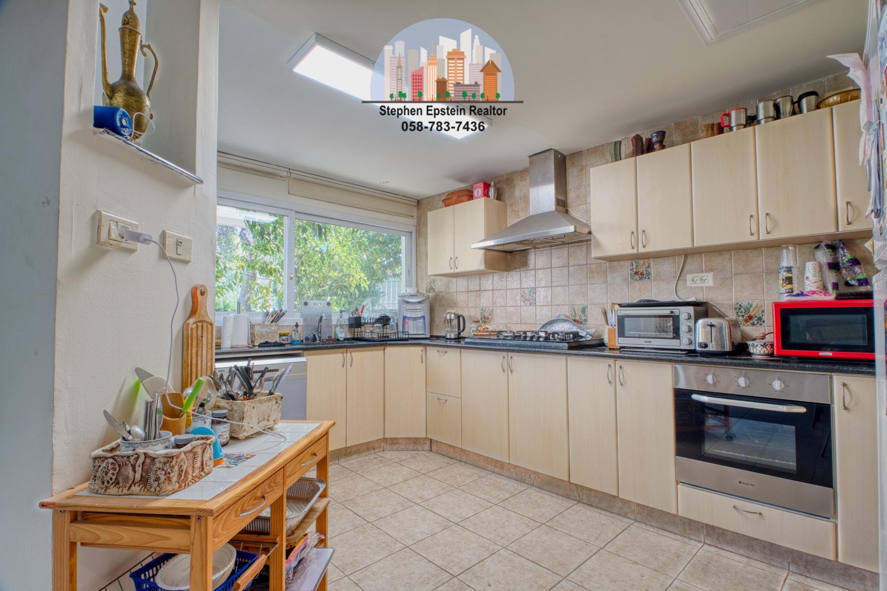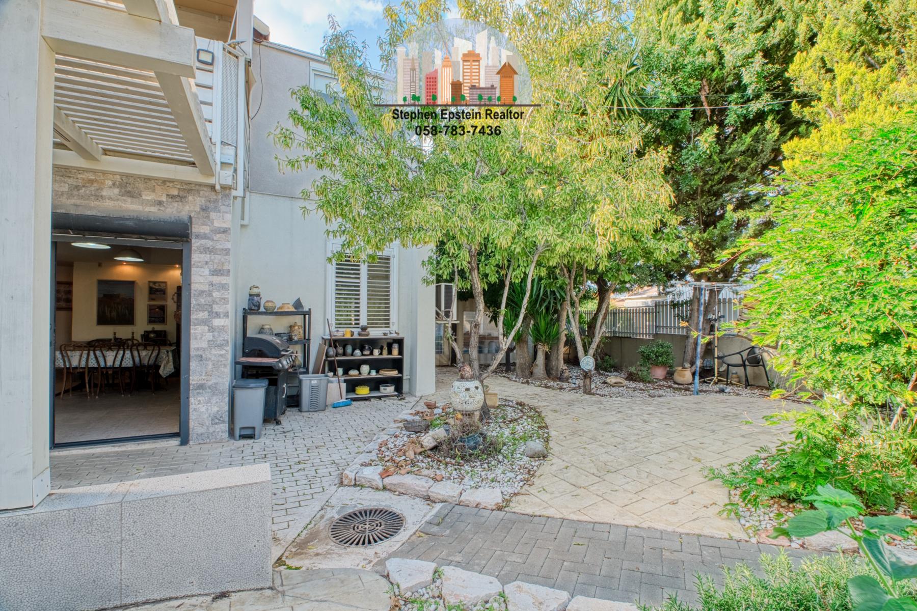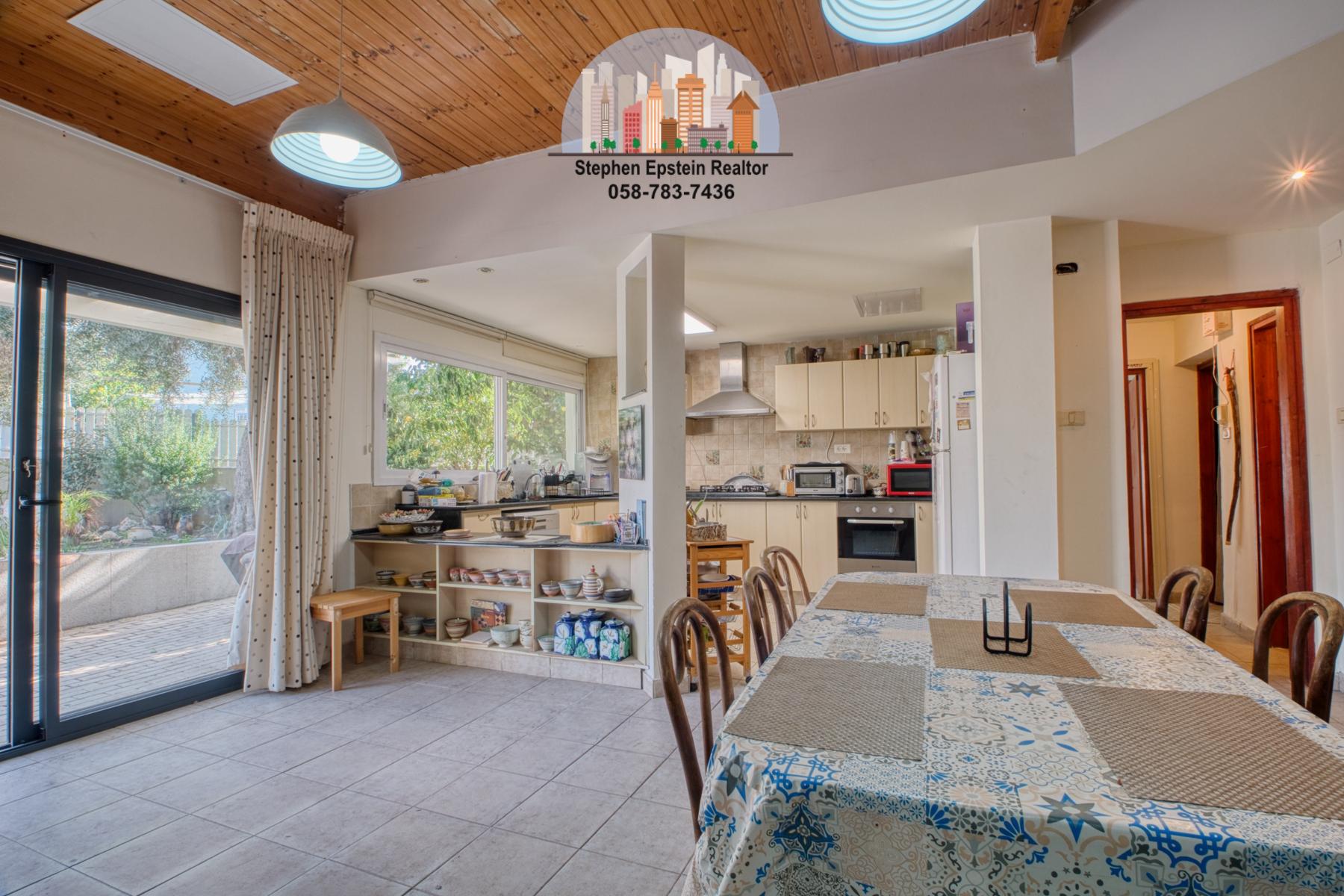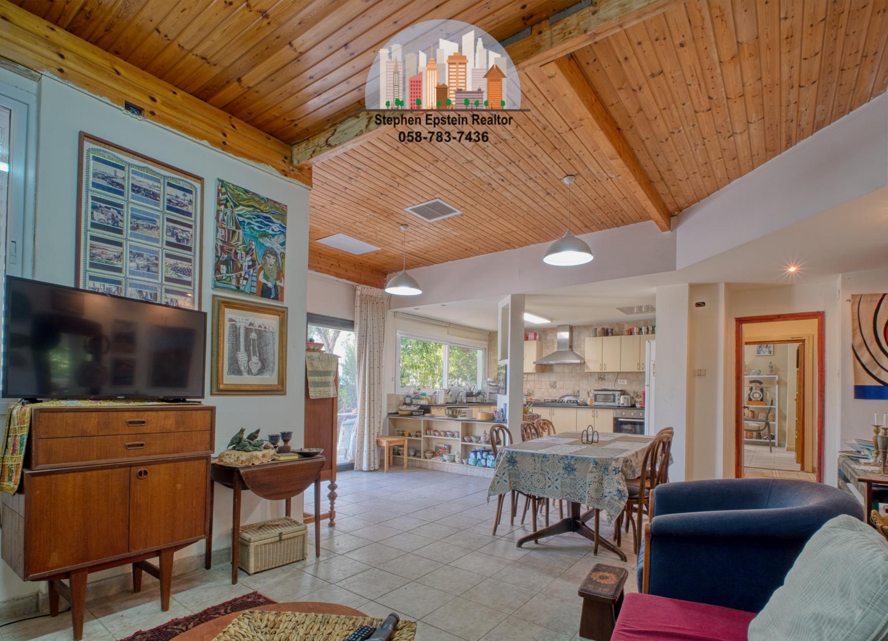 Built on a large (~425 square meter) lot, this 187 square meter home (plus mirpeset)  features wide plank pine floors, pine ceilings, stairs. It is on a large fenced in courtyard with mature trees on the lot, including fruit trees. The home is cooled and heated with AC/heating units as well as ceiling fans. The upper floor has skylights filling the room with a beautiful light. Situated on a quiet street in Afridar, close to a large Ashkenazi shul, parks, schools and public transportation and a commercial center
