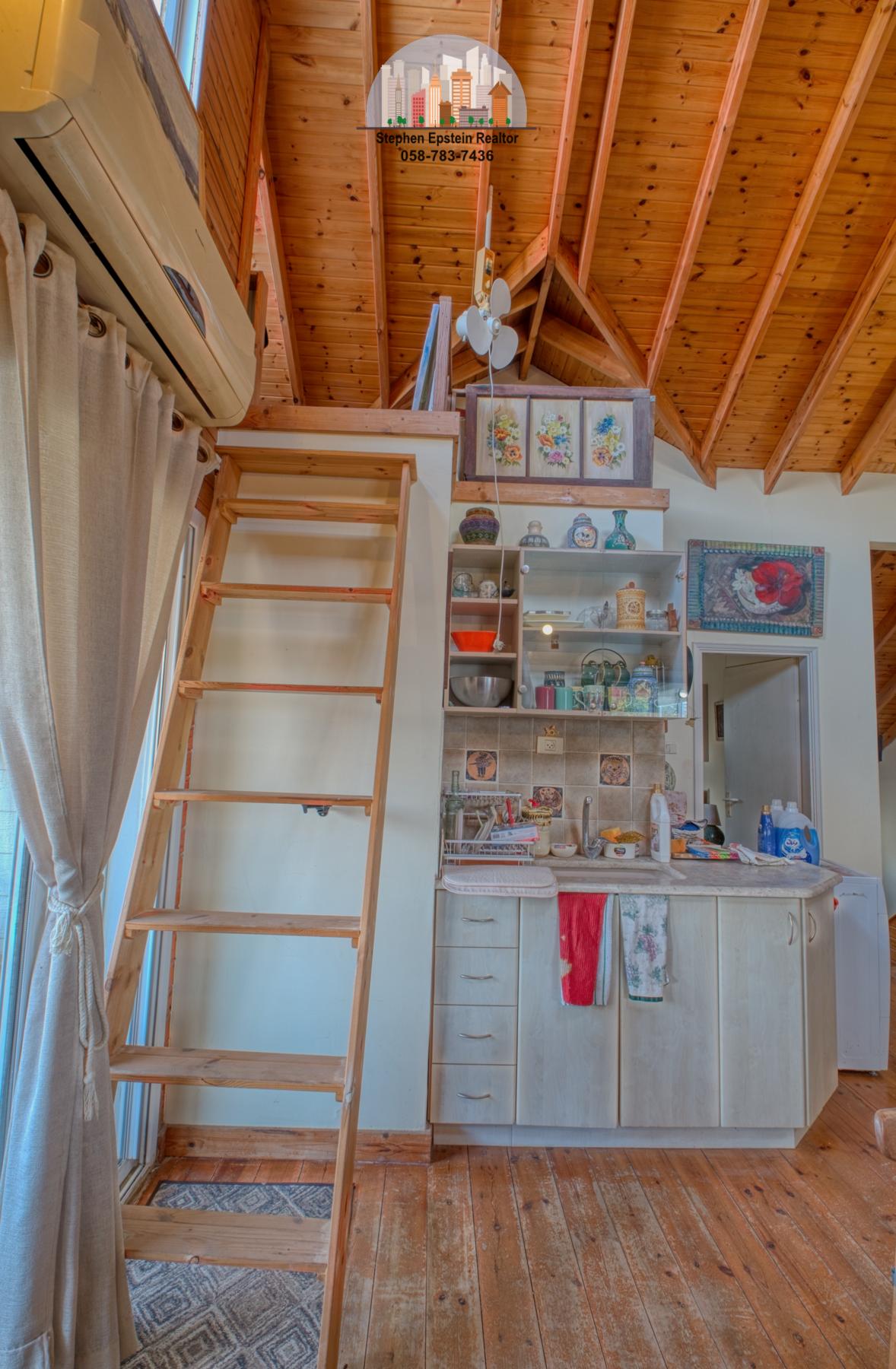 • Upper area with wood ladder for storage